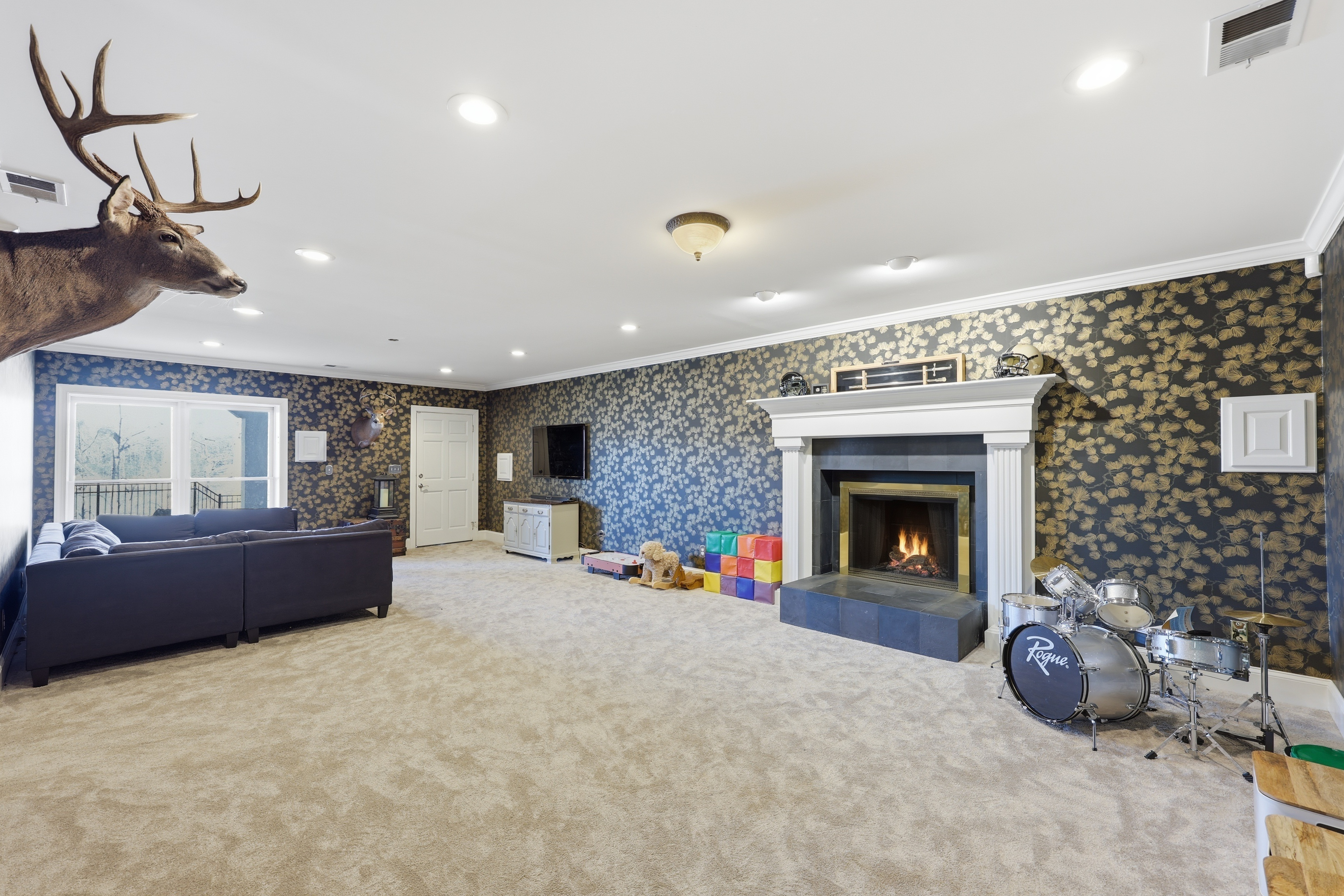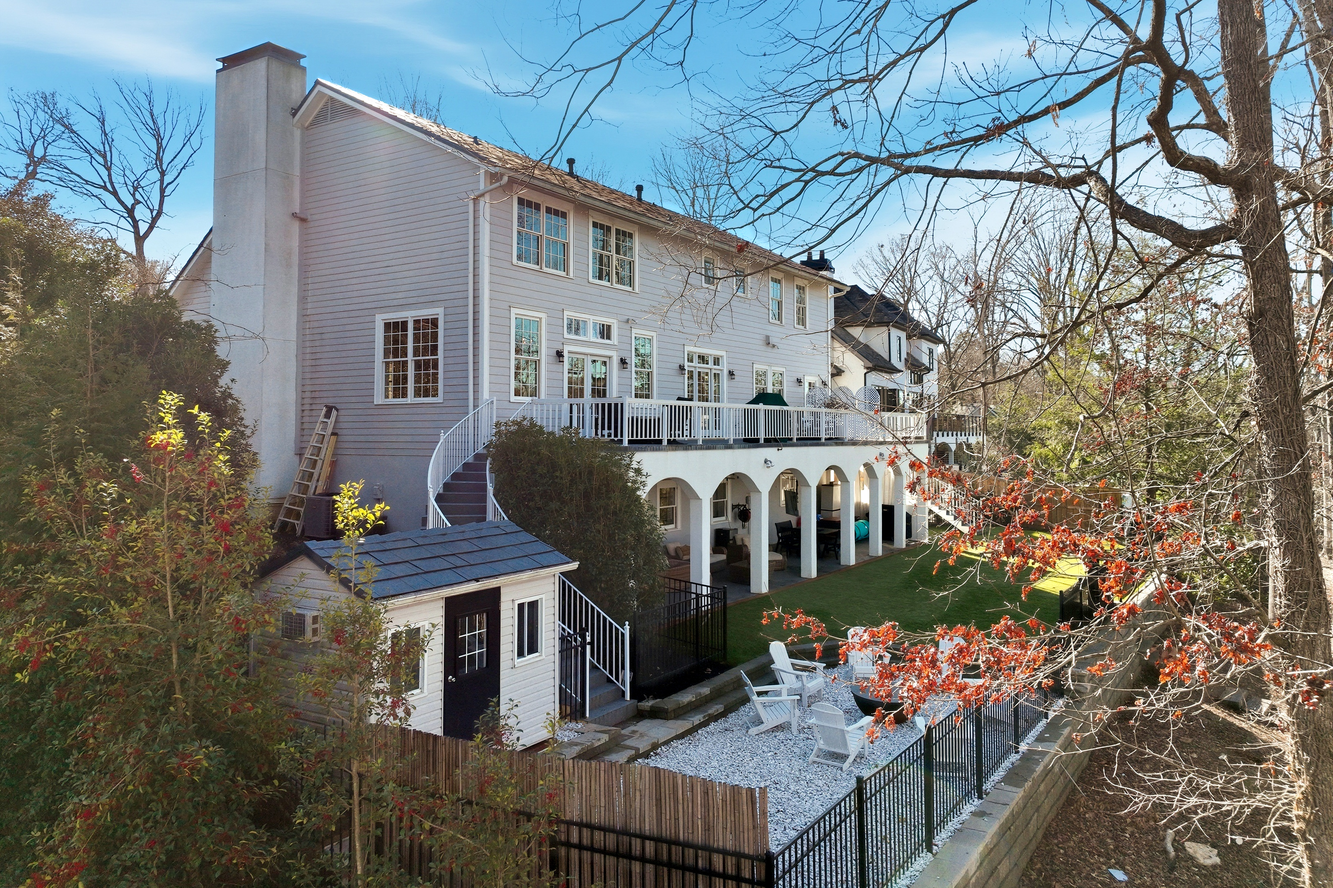 • Fireplaces on both levels, workshop space in garage, fenced backyard with turf and fire pit area.